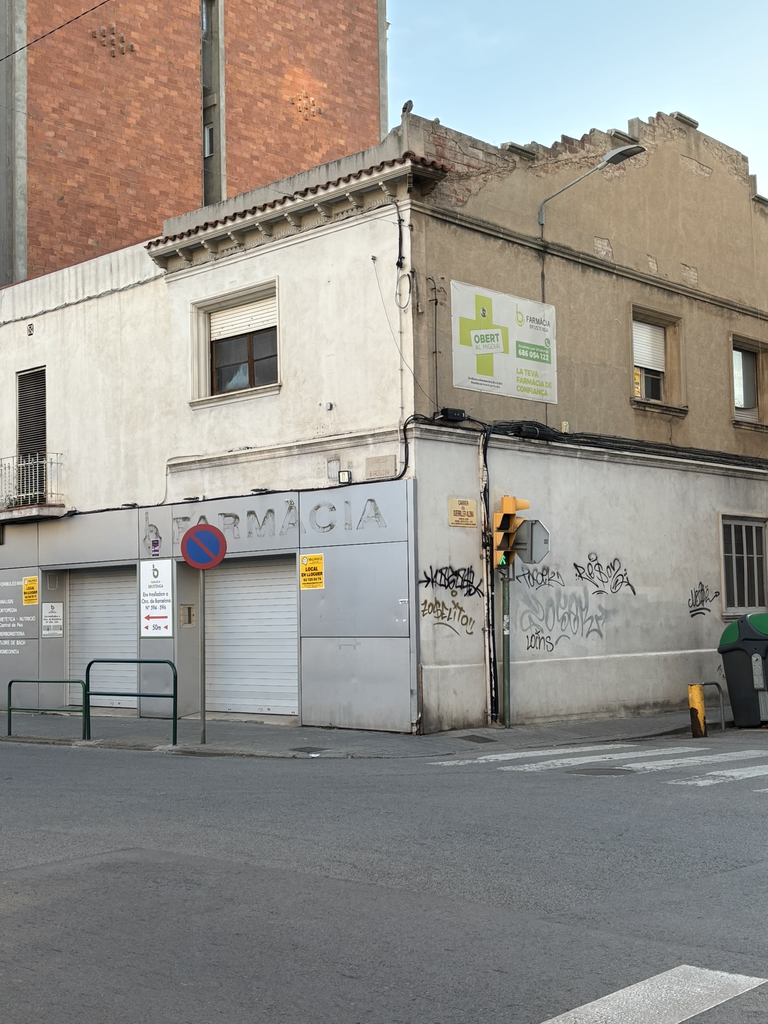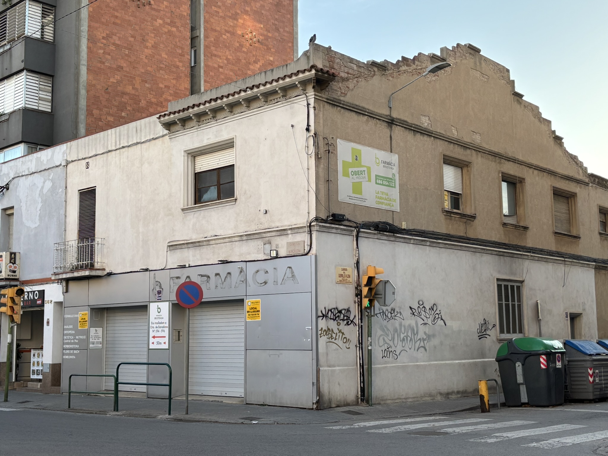 Local comercial totalmente exterior a tres vientos (carretera Barcelona, calle Guerriller Alzina i calle Salvat Papasseit) en alquiler, situado en una de las vías principales de la ciudad, cerca del acceso a la autopista y la Gran Vía. El edificio tiene 2 plantas (362 m2), pero actualmente se haya habilitada la planta baja (177 m2), distribuida en 2 salas: una de ellas totalmente diáfana de unos 93 m2 y la otra distribuida en despachos separados por pladur de 84 m2 (también podría ser totalmente diáfana) y un aseo.